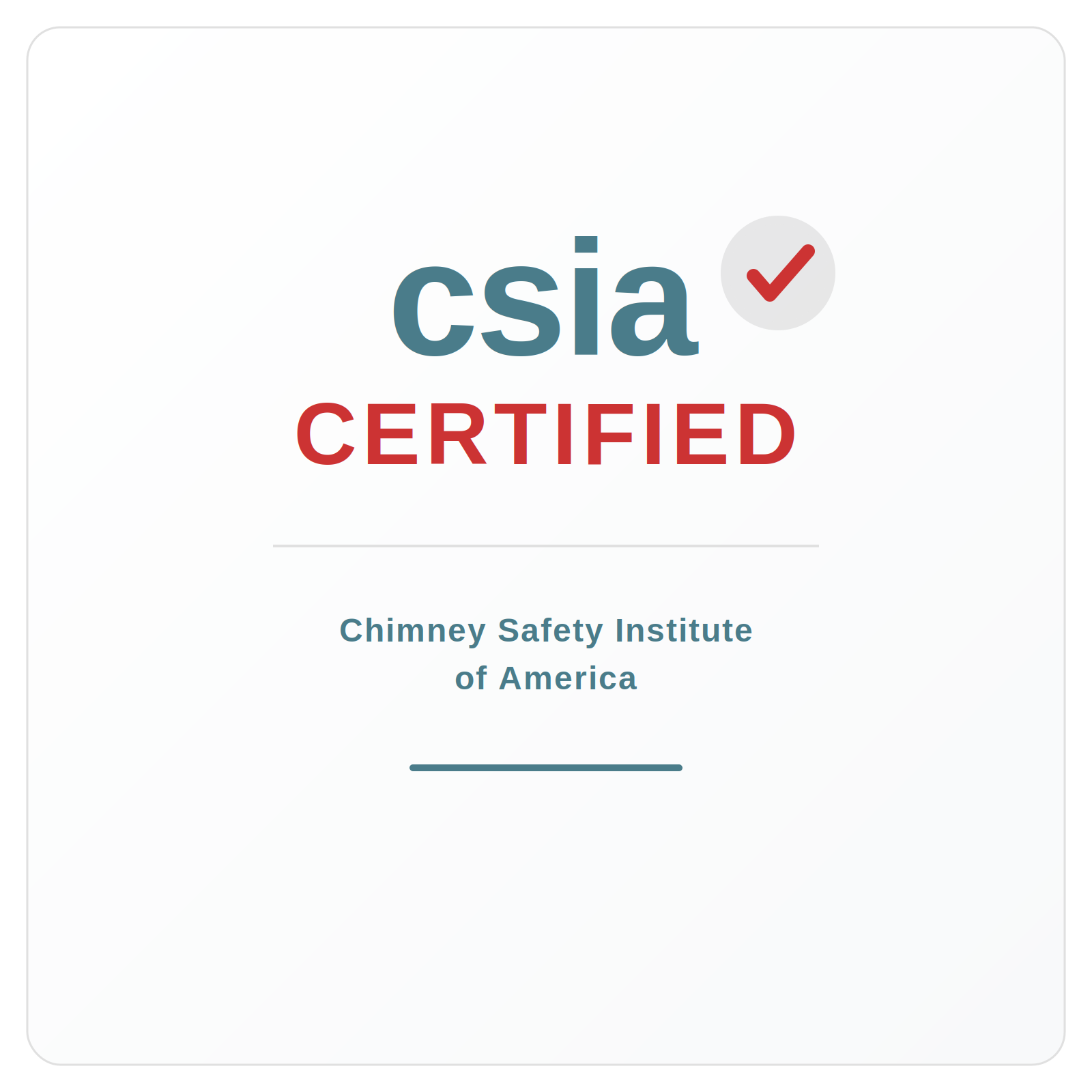 Yes. Our technicians are certified by the Chimney Safety Institute of America (CSIA) and the National Fireplace Institute (NFI). We carry full insurance on every job.